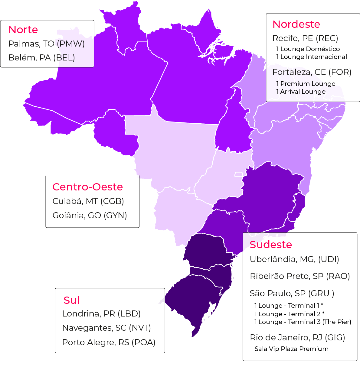 São 12 salas VIPs em 9 aeroportos e 4 salas com inauguração prevista para o primeiro semestre de 2024.